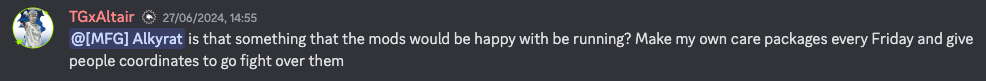 The GZW Community Events originally started with TGxAltair asking the above question, from there he ran the very first event ‘Altair’s Airdrops’. After a couple of weeks, word got out and MFG caught wind of what he was doing. They offered their support, alongside others in the community who wanted to help. Gage, Reaver, Brick and Timmsy all expressed a desire to help and so the Community GMs were born.